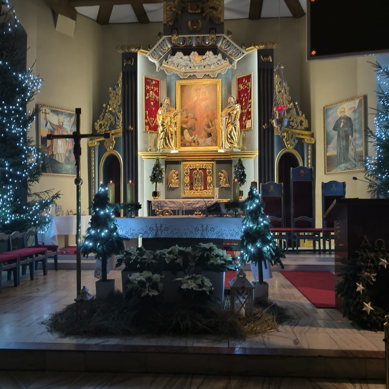 w ciągu dnia dwukrotnie odpust zupełny pod zwykłymi warunkami za siebie (raz) bądź dla osoby (osób) zmarłej (zmarłych), udać się na krańce diecezji by odwiedzić choć kilka kościołów stacyjnych dla zrealizowania tego planu. Czas odpoczynku świątecznego, a tutaj taka inicjatywa i o dziwo znalazło się dość sporo osób chętnych na tą szaloną wyprawę po odpusty. Różnie to w ciągu tego Roku Jubileuszowego wyglądało jeśli chodzi o zatroskanie o zyskiwanie odpustów z naszej strony, podejrzewam, że wielu nie podjęło tego wezwania, może jednorazowo, bądź sporadycznie, przy okazji jakiś większych uroczystości. Więc tym bardziej widać, że są osoby w Kościele, które mają taki "szósty zmysł", taką szczególną wrażliwość dla podejmowania wyzwań by tych łask Bożego Miłosierdzia, których dawcą jest sam Pan Bóg nie marnować, ale udowadniać, że warto się o nie starać w każdym czasie, a szczególnie w tym już zakończonym (na poziomie diecezjalnym) Roku Jubileuszowym. W dwa dni odwiedziliśmy osiem kościołów stacyjnych. Pierwszego dnia nawiedziliśmy kościół pw. MB Nieustającej Pomocy w Świdwinie, kościół pw. Zmartwychwstania Jezusa w Drawsku Pomorskim, kościół pw. Niepokalanego Poczęcia NMP w Mirosławcu i kościół pw. św. Jana Chrzciciela w Trzciance. Drugiego dnia byliśmy w Sanktuarium MB Bolesnej w Skrzatuszu, w kościele Świętej Rodziny w Pile, w kościele pw. św. Michała Archanioła w Jastrowiu i w kościele NMP Wspomożycielki Wiernych w Miastku. Towarzyszyła nam w czasie pielgrzymki ikona Świętej Rodziny z Ukrainy - wyjątkowa, ponieważ napisana przez księdza kapelana obecnie posługującego żołnierzom w Ukrainie, który pisze ikony na deskach pozyskanych ze skrzyń po amunicji. W poczuciu bezradności wobec trwającej tej zupełnie bezsensownej wojny na ziemi Ukrainy postanowił tak wzywać do modlitwy o pokój i rozsyłać ikony pisane na tych skrzynkach w różnych kierunkach. Ta ikona która nam towarzyszyła, została przekazana proboszczowi parafii pw. Świętej Rodziny w Pile w dzień patronalnej Uroczystości tejże parafii. Osobiście Dziękuję za możliwość wzięcia udziału w tej niezwykłej pielgrzymce, dziękuję Jakubowi pomysłodawcy, pani Eli, współorganizatorce i wszystkim uczestnikom za niezwykle mile spędzony czas. Pod spodem kilka zdjęć z wyprawy - zapraszam do obejrzenia...